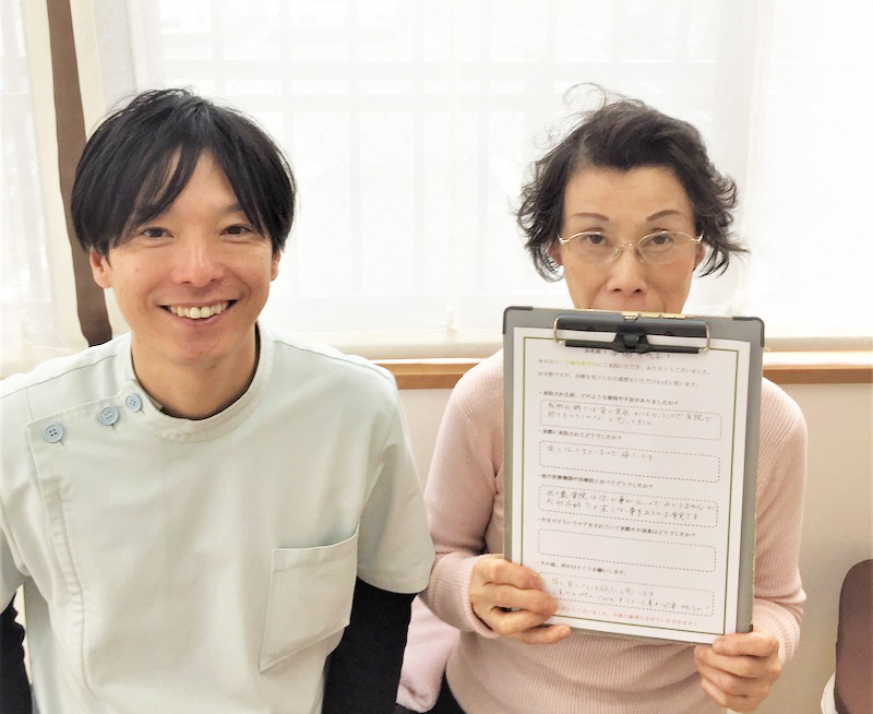数回の施術後にはしびれが無くなり、夜も眠れるようになり、気持ち的にも楽になりました。