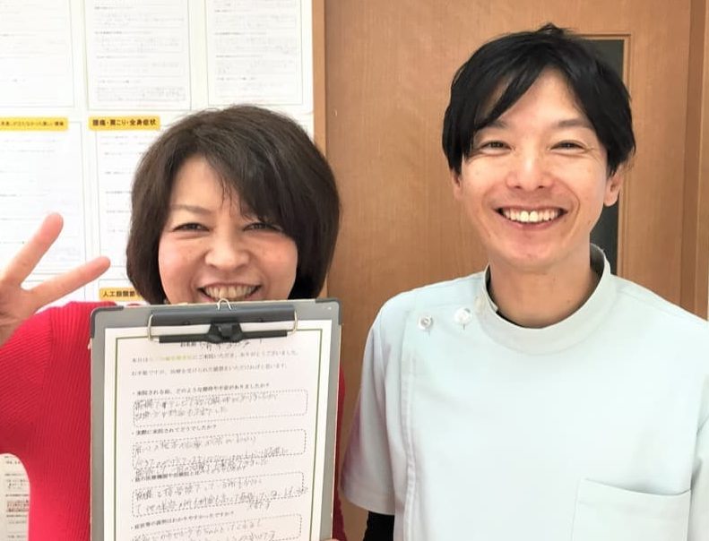 先生は信頼でき、自分の癖も細かく丁寧に聴いてもらえます。また膝が曲がるようになり、 なごみさんにもっと早く行けば良かったと痛感しています。
